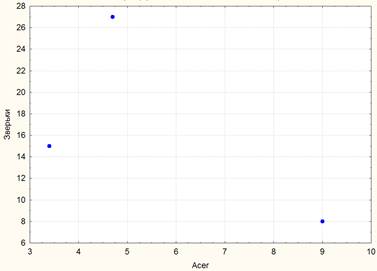 Рисунок 4 – Диаграмма рассеяния для трех видов мелких млекопитающих в разных растительных ассоциациях