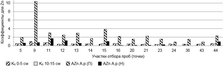 Рисунок 2 – Относительные концентрации цинка в почве (Kₒ) и растениях (АZn A. cristatum)