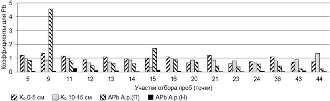 Рисунок 3 – Относительные концентрации свинца в почве (Kₒ) и растениях (АPb A. cristatum)