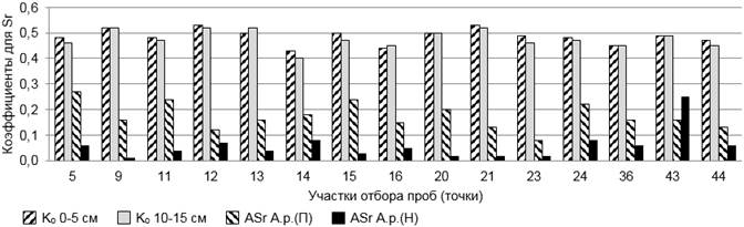 Рисунок 5 – Относительные концентрации стронция в почве (Kₒ) и растениях (АSr A. cristatum)