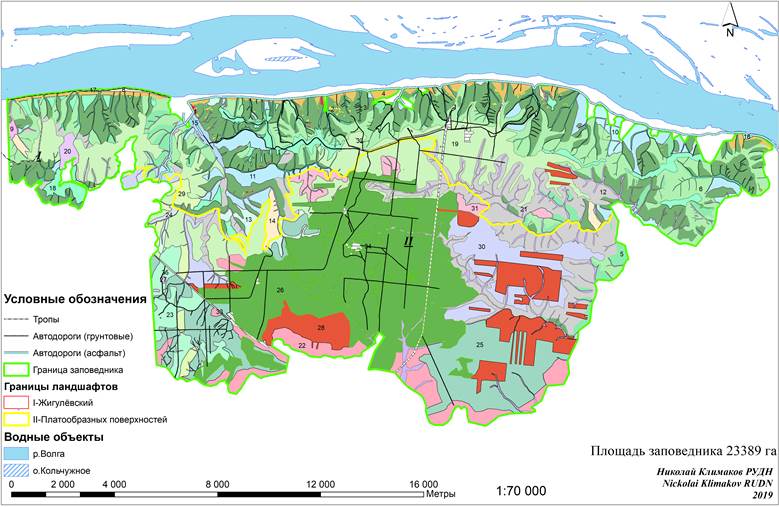 Рисунок 1 – Ландшафтная карта Жигулёвского государственного природного биосферного заповедника имени И.И. Спрыгина