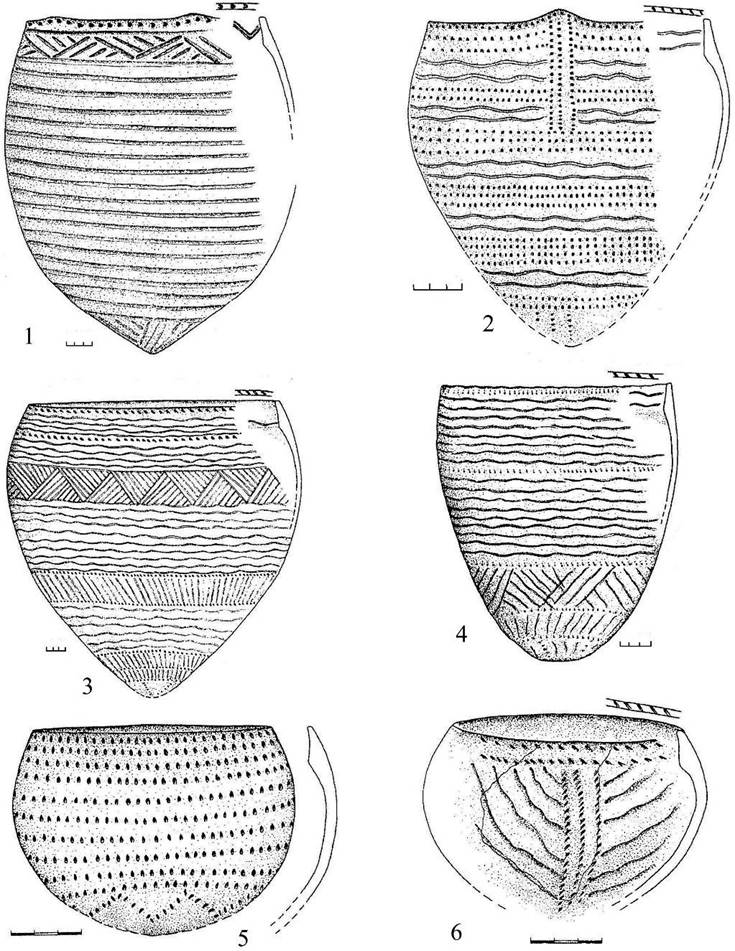 Рисунок 1 – Евстюниха I. Реконструкция неолитических сосудов (1–6; по: [2])