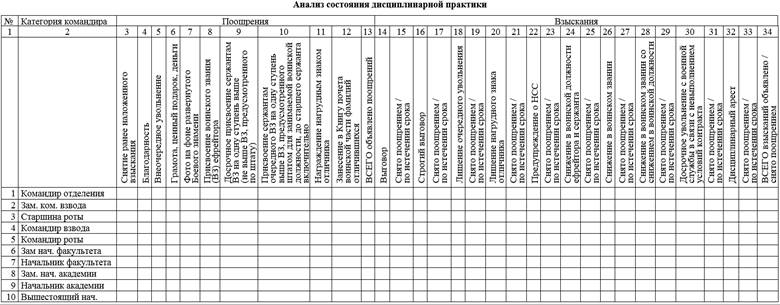 – командиру подразделения заполнять ведомость анализа дисциплинарной практики за курс (рис. 3) ежемесячно;