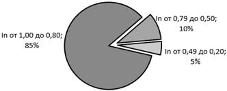 Показатель «индекс состояния (жизненности) древостоя» свидетельствует о том, что зеленые насаждения 85% обследованных объектов являются «здоровыми», на 10% объектов – «поврежденными», на 5% – «сильно поврежденными».