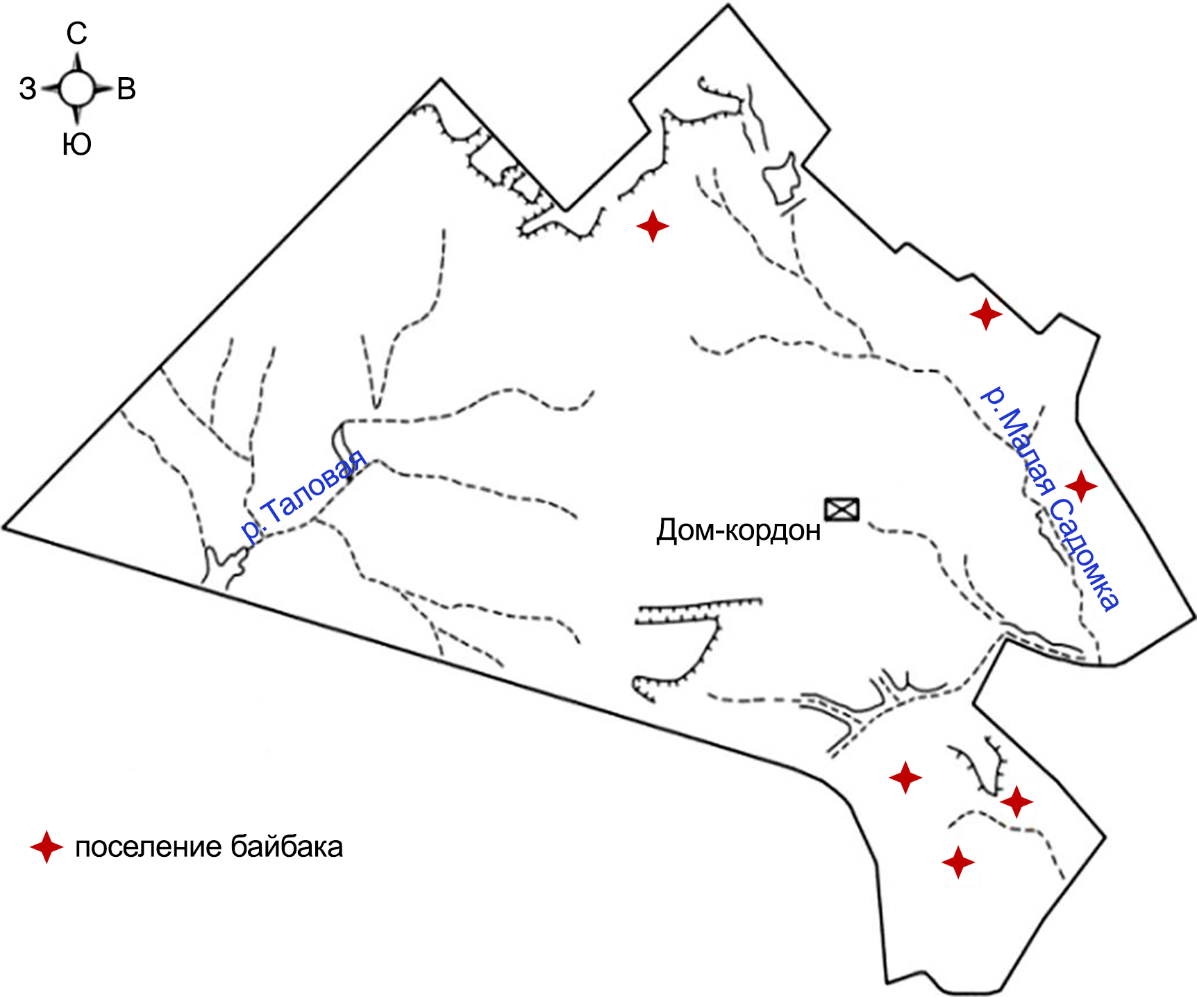Рисунок 2 – Схема участка «Таловская степь» с отмеченными поселениями