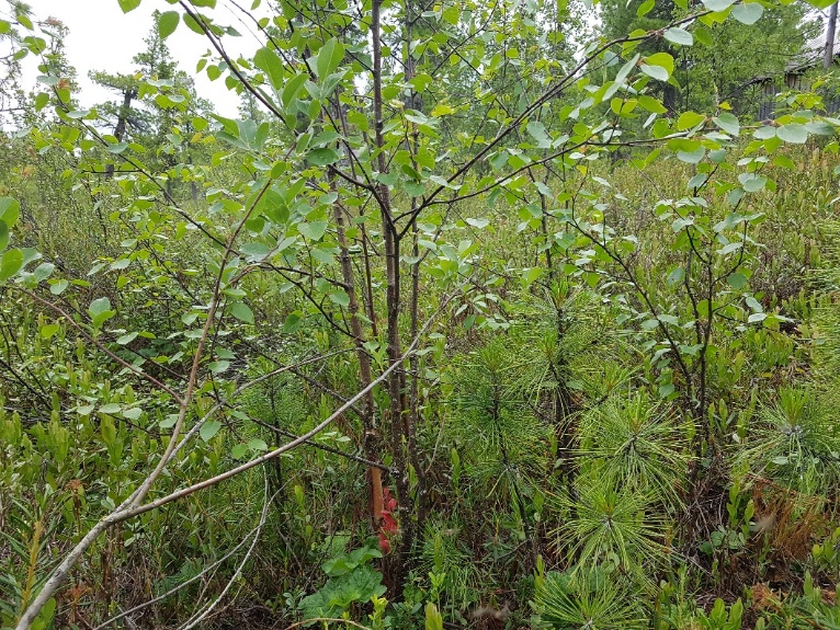 Общее проективное покрытие – 90%. Древесный ярус состоит из P. sibirica – высотой до 12 м, B. subarctica – высотой до 6 м. Сомкнутость крон – 0,2. Подлесок сформирован B. nana (сор1).