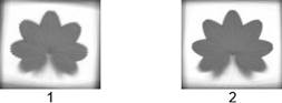 Рисунок 5 – Эталонная конфигурация листовой пластинки A. gracilis из разных местообитаний: 1 – недостаточное увлажнение; 2 – достаточное увлажнение