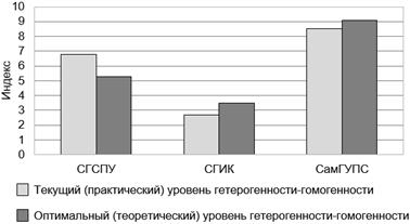 Экспертная оценка необходимого уровня гетерогенности в различных вузах, полученная в процессе тестирования методики (участвовало по 2–5 экспертов от вуза), представлена на рис. 1.