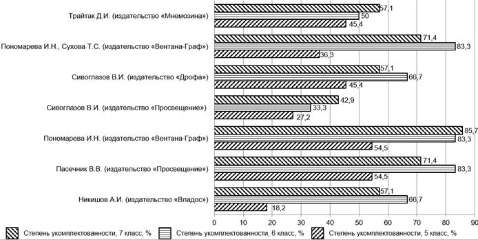 Рисунок 1 – Обобщенные данные укомплектованности курса биологии 5–7 классов разных предметных линий