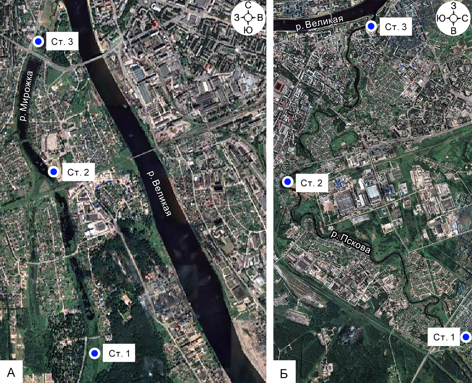 Отбор проб фитопланктона проводили в раннеосенний период (сентябрь) 2019 г. на р. Мирожке и р. Пскове, протекающих в черте г. Пскова (рис. 1).