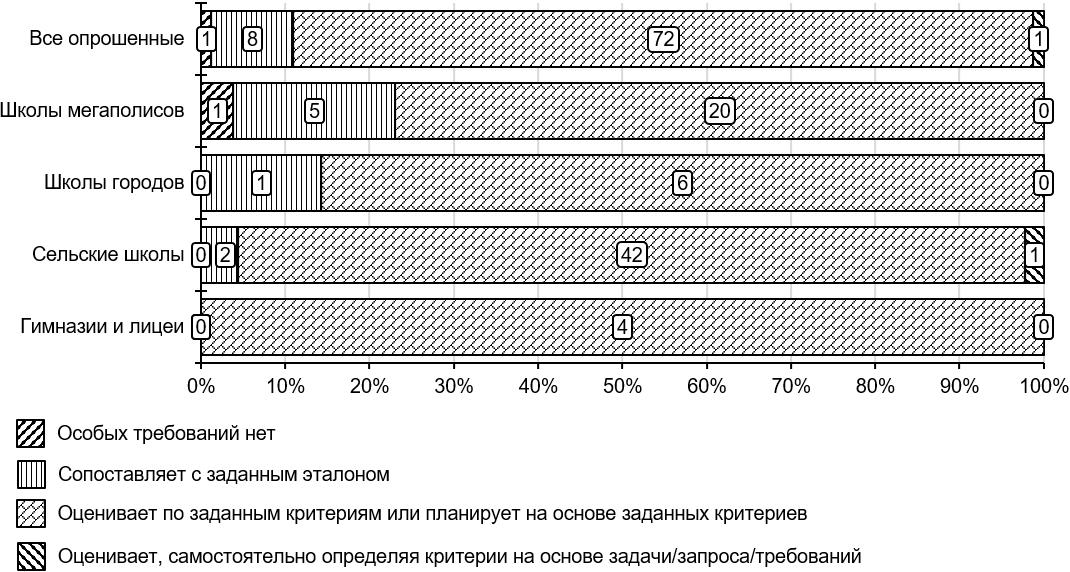 В других аспектах запросы участников анкетирования существенно разнились. Интересно, что при этом наиболее высокими были запросы представителей сельских школ (рис. 2 в качестве примера).