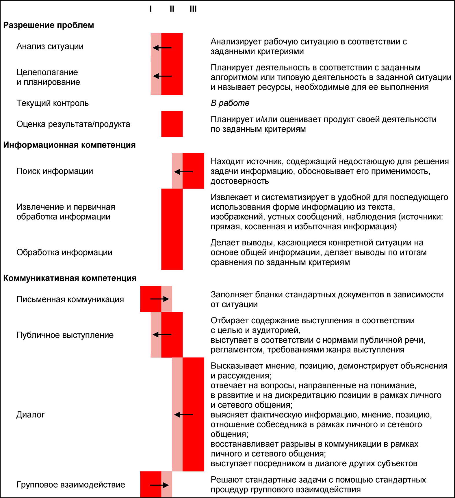 Большинство нормативных документов для подготовки работников с квалификацией, аналогичной квалификации российских выпускников учреждений среднего профессионального образования, и материалов на сайтах крупнейших рекрутинговых агентств, адресованных работникам с названным уровнем квалификации [11–13], содержат указания на следующие группы сквозных навыков: коммуникативные, информационные, сотрудничество (работа в команде), решение проблем, предпринимательство, умение учиться. Очевидно, что сотрудничество/работа в команде может быть отнесено, в части навыков, к групповой коммуникации, умение же учиться (абстрагируясь от неизбежно присутствующих в списках ценностей, черт характера и склонностей) – к работе с информацией и отчасти – к решению проблем; к решению проблем (в операционном плане, то есть также абстрагируясь от черт характера) следует отнести и «предпринимательство».