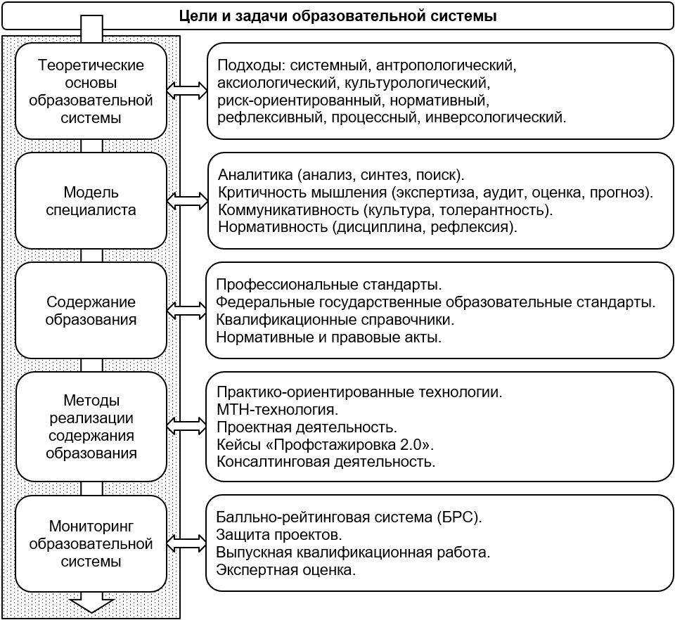 Практическую апробацию методологии проектирования и реализации образовательной системы выполним на примере образовательной программы «Техносферная безопасность». Контуром образовательной программы является методология, изображенная на рис. 2.