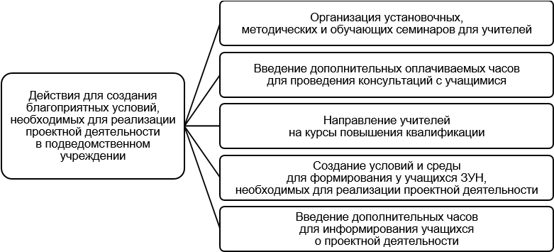 Рисунок 1 – Действия по созданию условий и среды для реализации проектной деятельности