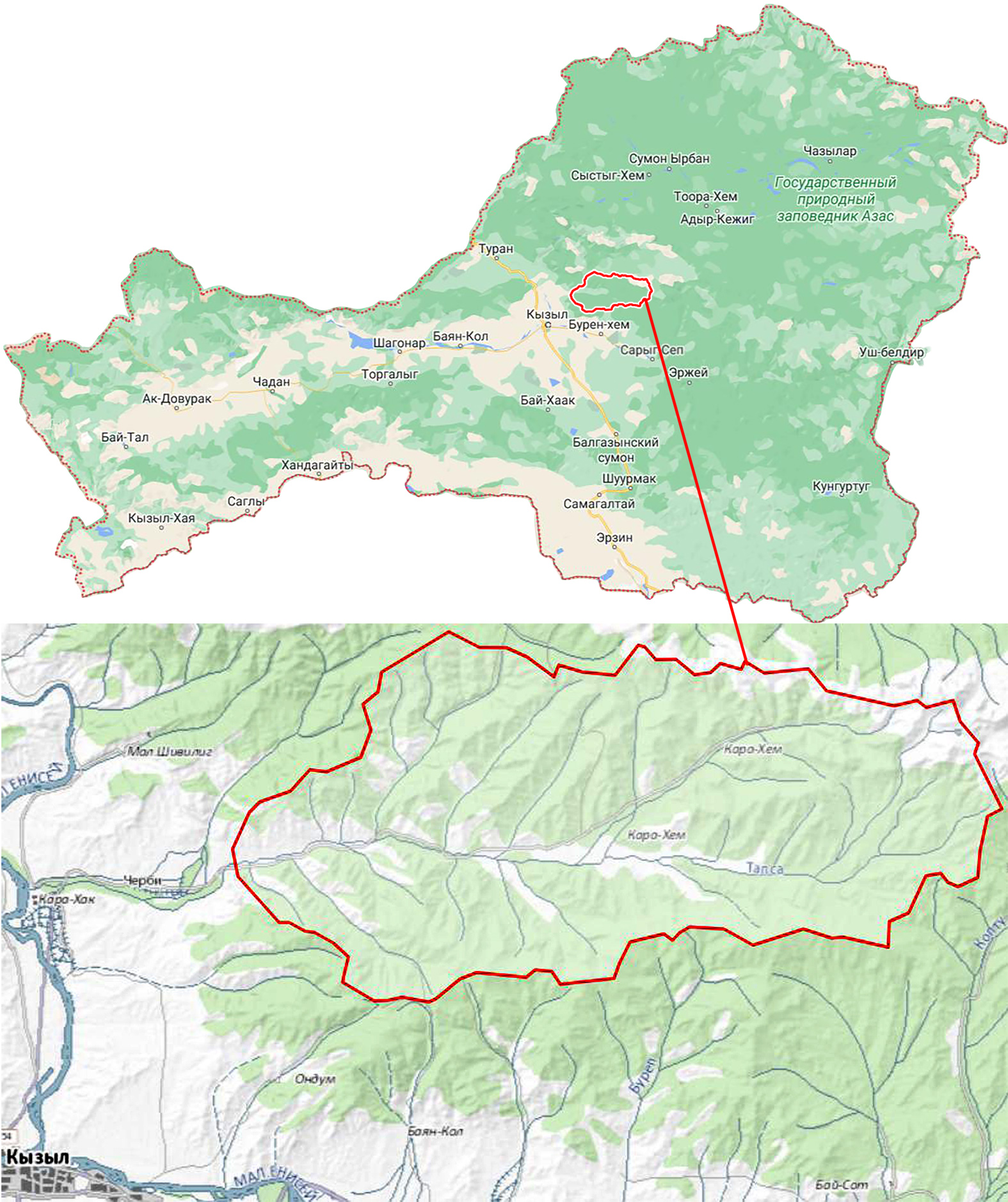 Рисунок 1 – Тапсинский заказник на территории Республики Тыва