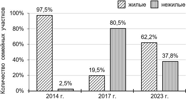 Соотношение жилых и нежилых семейных участков представлено на рис. 2.