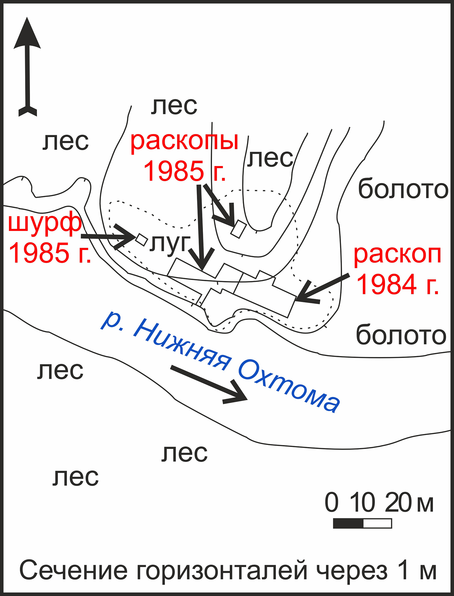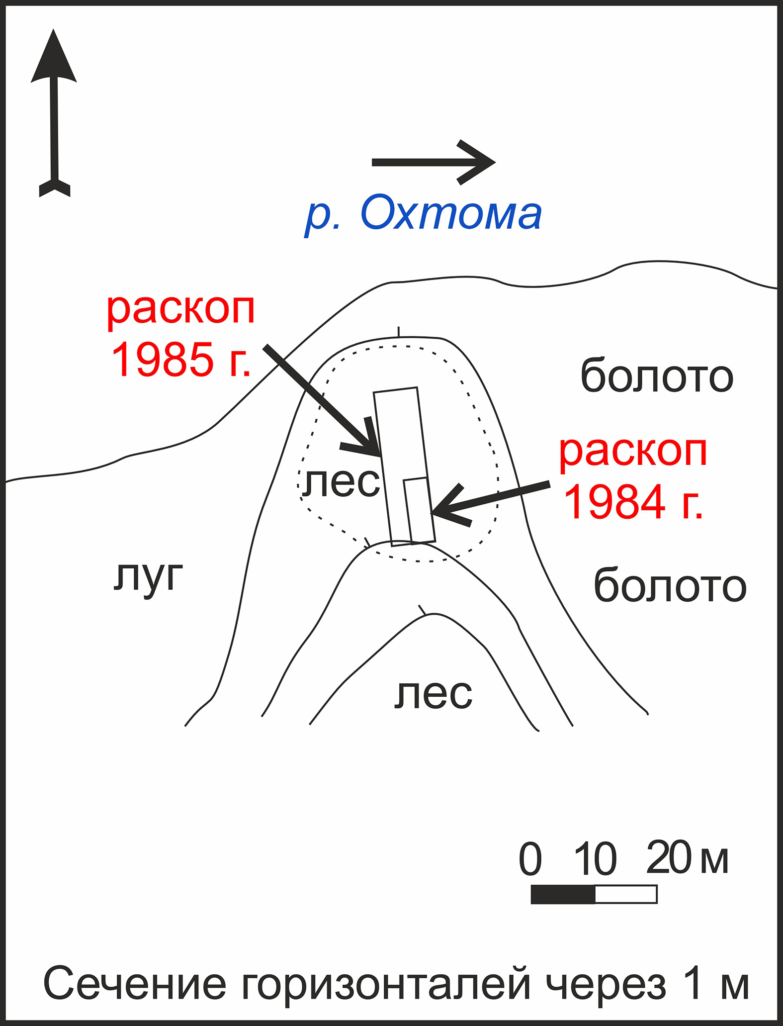 Рисунок 3 – План расположения раскопов на поселении Охтома I