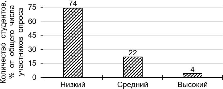Рисунок 1 – Результаты оценки первоначального уровня развития познавательного интереса студентов