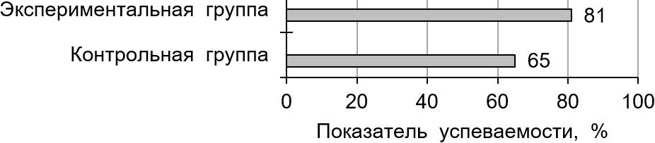 Проведенный контроль качества полученных знаний в рамках описываемого эксперимента показал, что материал усваивается лучше в экспериментальной группе, где в качестве домашнего задания обучающиеся должны были выполнить ИК-карту. Так, в экспериментальной группе самостоятельную работу выполнило успешно 81% обучающихся, а в контрольной группе 65% обучающихся. Стоит отметить, что наиболее высокие оценки («отлично», «хорошо») получили те обучающиеся, которые выполнили всю домашнюю работу и подготовили ИК-карту по изучаемой теме. В целом данное задание считается успешно выполненным в том случае, если ученик получил оценку «удовлетворительно», «хорошо» или «отлично», и не успешно выполнено, если получена оценка «неудовлетворительно». Диаграмма результатов второго этапа педагогического эксперимента представлена на рис. 2.