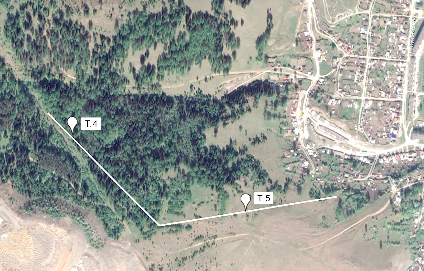 Рисунок 2 – Фрагмент снимка с местом расположения ключевых точек профиля 4–5 (северо-восточный склон г. Рудничная, в окрестностях города Миньяра)