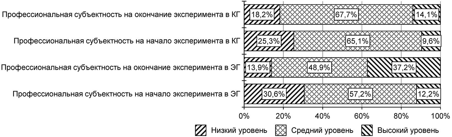 Рисунок 2 – Результаты реализации технологии формирования профессиональной субъектности будущих педагогов