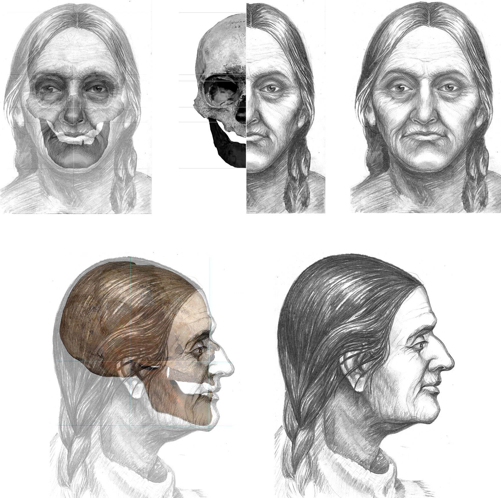 Могильник Ишкиновка III представлен фрагментами двух женских скелетов. Один (к. 3, п. 3) имеет средней длины и массивности бедренные кости, с наличием умеренной пилястрии и уплощенным диафизом на подвертельном уровне, несколько уплощенные большеберцовые кости на уровне питательного отверстия (табл. 3). На обеих большеберцовых костях фиксируется периостит. Позвонки грудного отдела уплощены, по периметру их тел имеются костные разрастания. Удалось реставрировать череп. Воспроизведена большая часть мозговой коробки и лицевого отдела. В целом он небольшой, долихокранный (табл. 1), с выраженным надпереносьем, имеет широкий, средненаклонный лоб, низкое, гетеропрозопное лицо. Нос среднеширокий, сильно выступает в профиль. Орбиты крупные в объеме всего лицевого отдела, высокие абсолютно и относительно. Череп, даже с учетом довольно большого по величине назомалярного угла, определенно европеоидный, при этом грацильный. По нему воспроизведена графическая реконструкция внешнего облика женщины (рис. 2). Из захоронения 1 кургана 3 имеется только лобная кость с носовыми косточками. Визуально этот фрагмент сходен с таковым первого женского черепа (к. 3, п. 3).