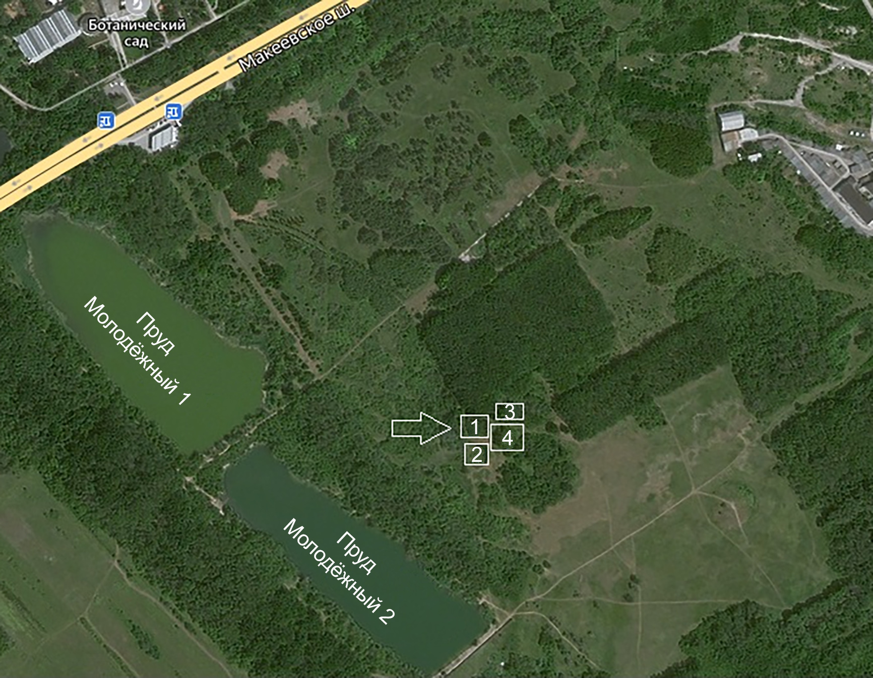 2. Figure 1 - Objects of research on the territory of the arboretum of Donetsk Botanical Garden