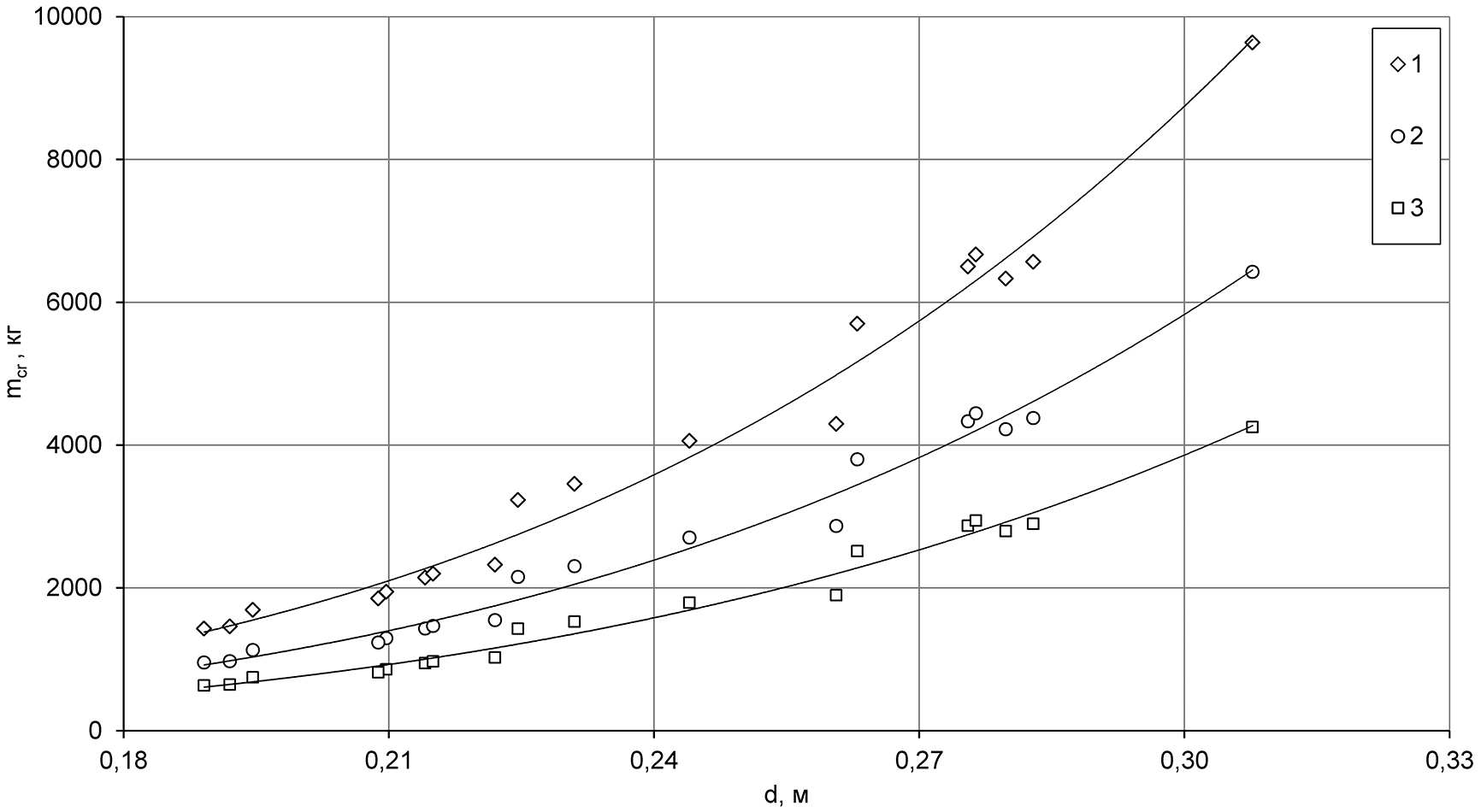 Рисунок 4 – Зависимость критической массы (mcr) от диаметра ствола