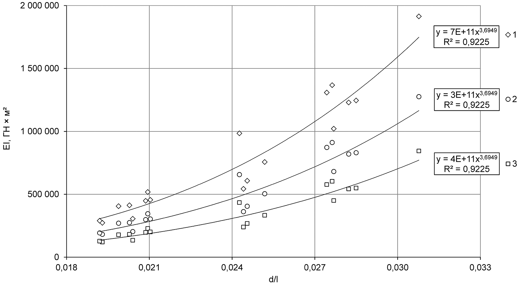 Рисунок 5 – Зависимость сопротивления изгибу EI от отношения диаметра к длине ствола