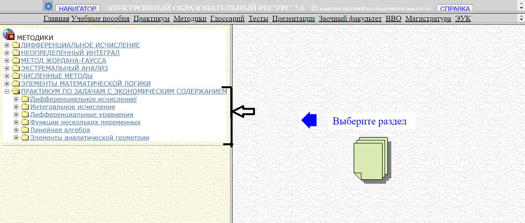 Для создания электронного образовательного пособия по изучению экономических приложений основных понятий базового курса математики необходимо было отобрать из всех разделов те, которые используются в экономической теории и практике [6].