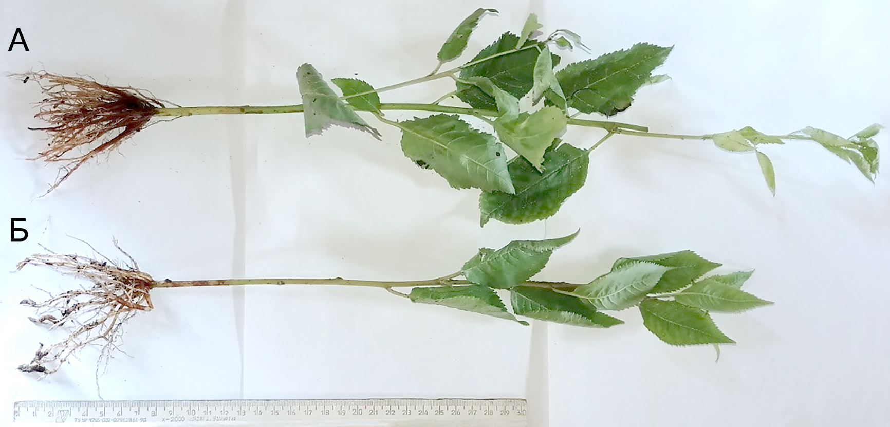 Рисунок 1 – Укорененные растения клонового подвоя ВСЛ-2 (А – 1 сорт, Б – 2 сорт)