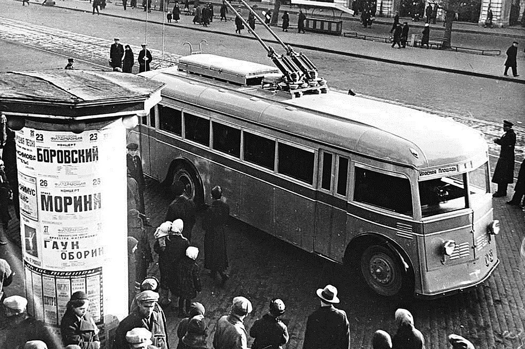 Рисунок 3 – Троллейбус «ЯТБ-1» на улицах Ленинграда. Октябрь 1936 г. [32]