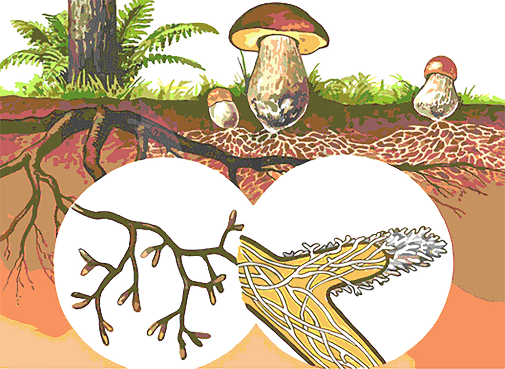 Ответ: микориза – пример симбиоза. Гифы гриба увеличивают площадь всасывания воды, а дерево делится продуктами фотосинтеза.