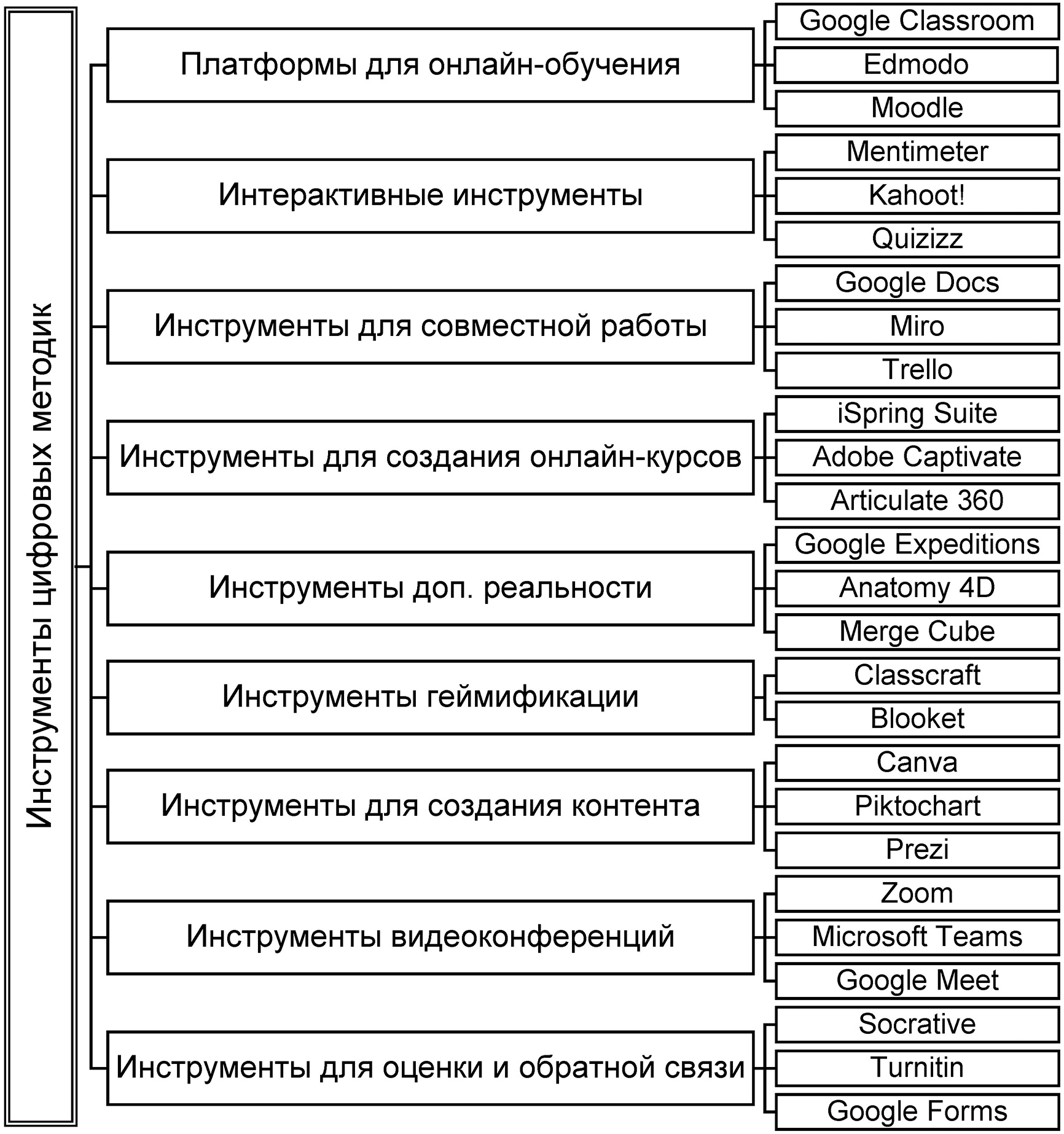 Отдельно классифицированы цифровые инструменты обучения, представленные ниже (рис. 2).