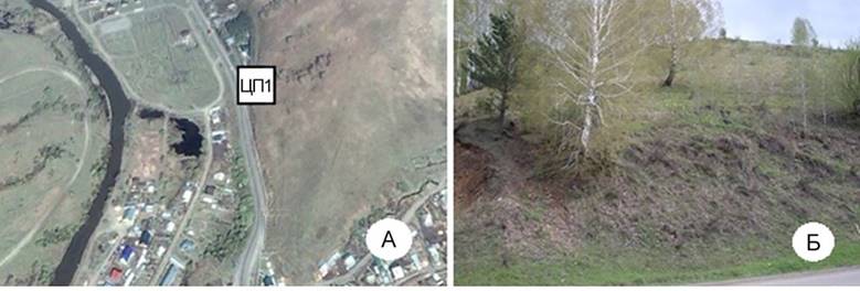 ЦП1 расположена в Майминском районе в окрестностях села Кызыл-Озёк на высоте 321 м над ур. м. Её координаты: 51°55ʹ04,6ʺ с.ш., 85°59ʹ23,6ʺ в.д. (рис. 1: А, Б).