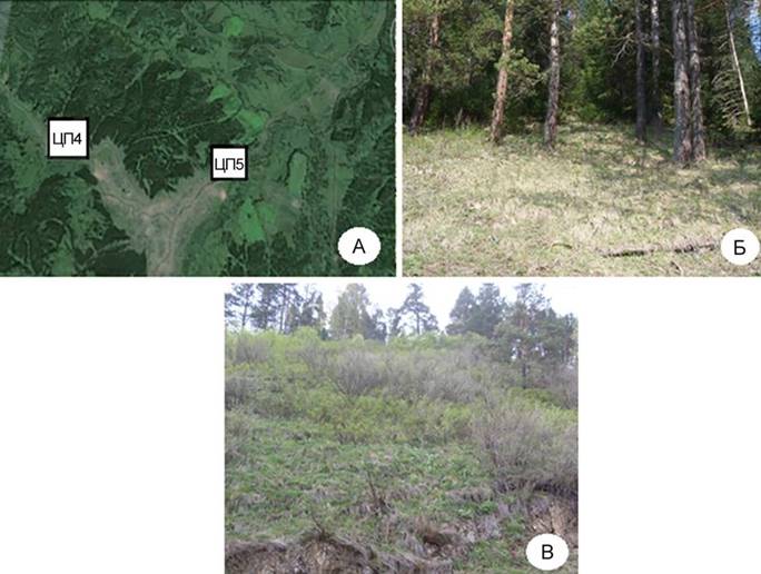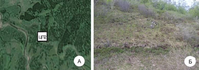 ЦП4 изучена также в Чойском районе в окрестностях с. Паспаул, на высоте 357 м над ур. м. Её координаты: 51°56ʹ43,0ʺ с.ш., 86°21ʹ50,9ʺ в.д. (рис. 4: А, Б).