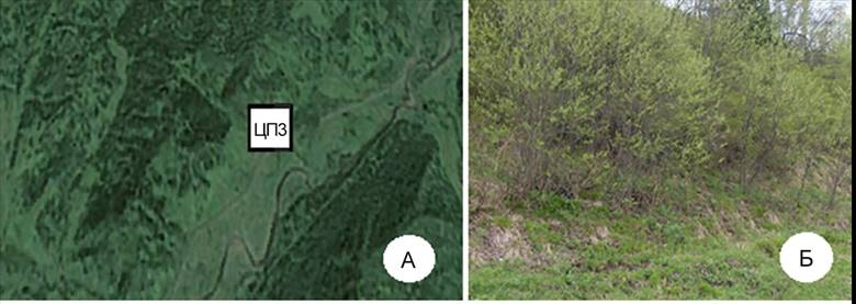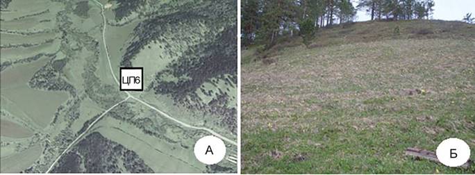 ЦП6 расположена в Майминском районе в окрестностях села Куташ на высоте 419 м над ур. м. Её координаты: 51°51ʹ39,5ʺ с.ш., 86°07ʹ08,9ʺ в.д. (рис. 5: А, Б).
