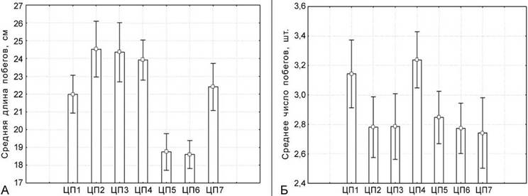 ЦП4 | Длина стебля, см | 25,8 ±1,4 (12–37) 22,7 | 24,6 ±1 (13–33) 19,3 | 21,5 ±0,8 (13–30) 19 |