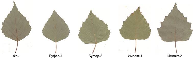 Рисунок 3 – Усредненный образ листовой пластинки B. pendula в градиенте техногенной трансформации окружающей среды