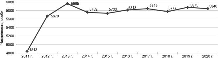 Рисунок 4 – Динамика численности бобра евразийского с 2011 по 2020 годы (данные охотреестра)