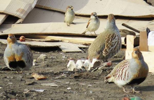 Рисунок 5 – Бородатые куропатки, кормящиеся на полигоне ТБО, 09.10.2019 г.
