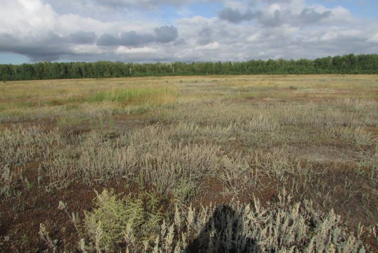 Однолетнеразнотравные галофитные луга (6,4%) занимают нарушенные местообитания. Травостой сильно разрежен. ОПП невысокое – колеблется от 41,0 до 61,0%. Превалируют луговые виды (25,5–41,0%), преимущественно галомезофиты (20,0–30,0%). Преобладает разнотравье (20,0–40,5%).