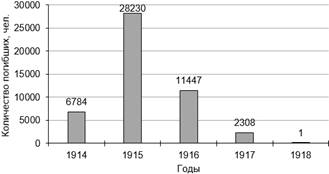 Рисунок 1 – Динамика безвозвратных людских потерь Самарской губернии с 1914 по 1918 гг.