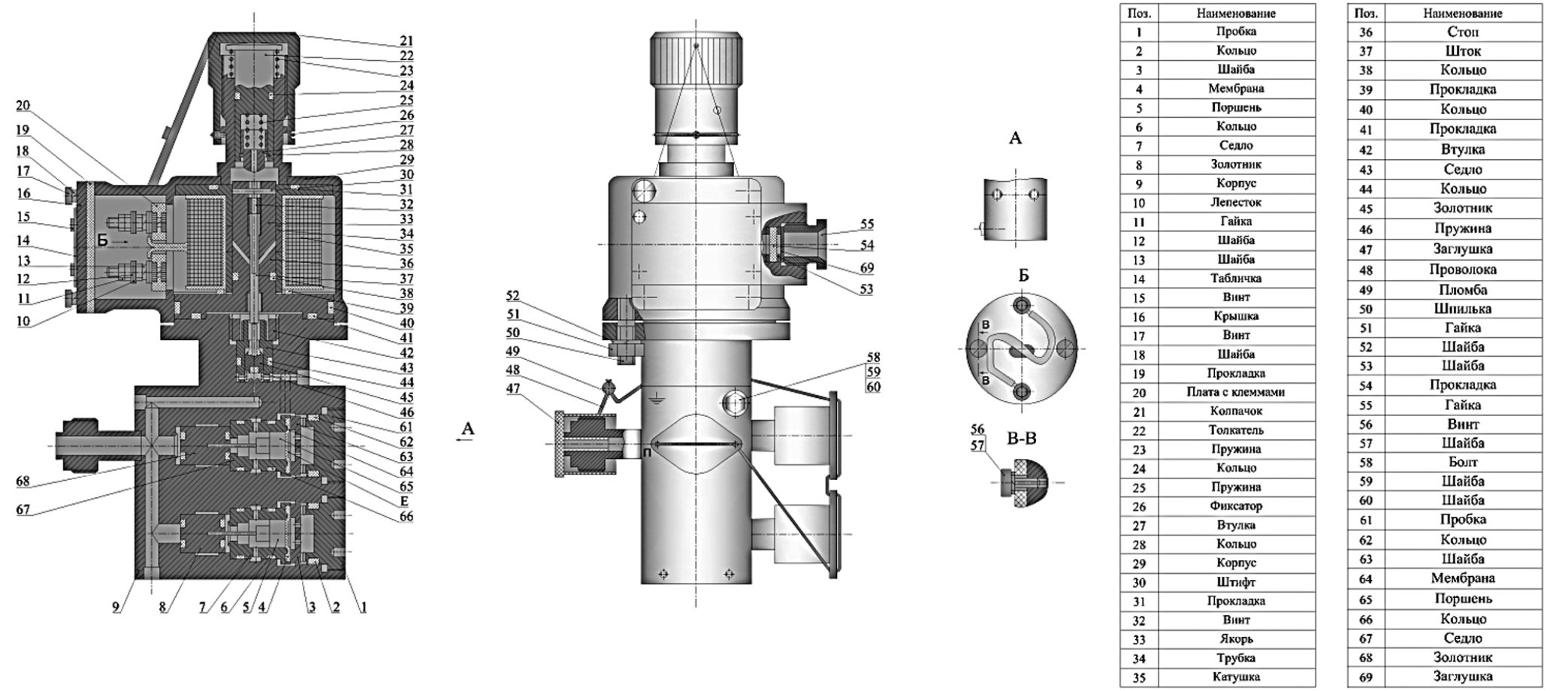2) резинометаллических золотников поз. 8, 45, 68, обеспечивающих герметичность в затворе;