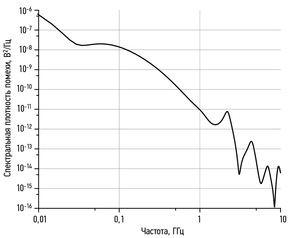 Рис. 4. Спектральная плотность помехи от электростатического разряда.