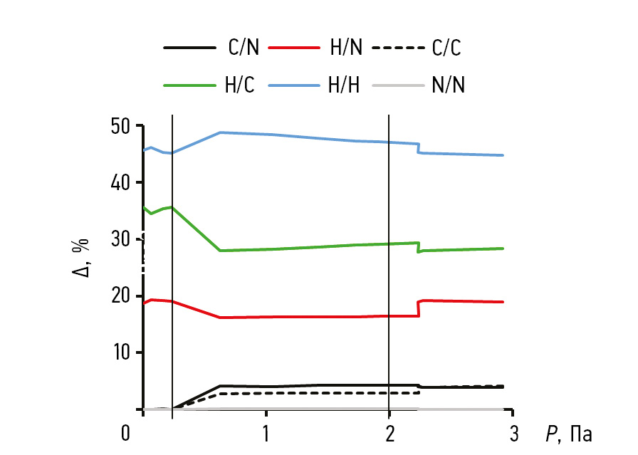 2. Рис. 1. Зависимость величин парциальных вкладов межмолекулярных взаимодействий от величины внешнего давления